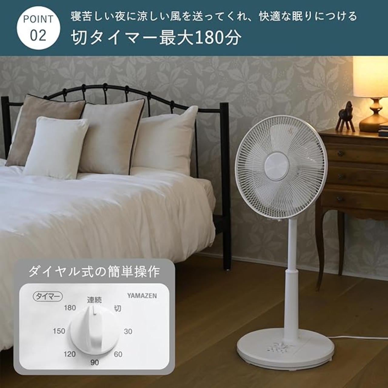 【タイマー】最大180分まで設定できる切タイマー機能搭載。寝苦しい夜でも涼しい風を送ってくれるので快適な眠りにつけます。
