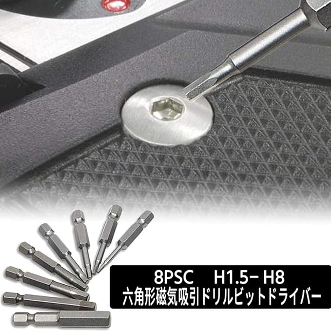 六角レンチビット 8本セット インパクトドライバービット 精密ドライバー 六角轴 6.35mm 磁気吸着 電動ドライバー ビット 1.5mmー8mm ドリル ビット工具 50mm長六角ビット