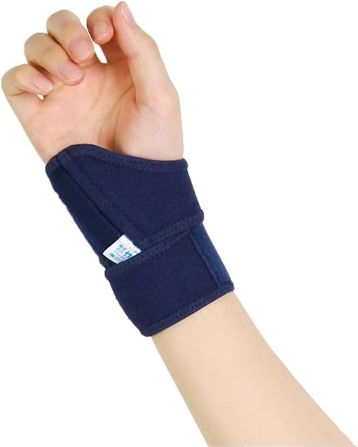 【手首廻り】 12-20cm 【幅】 10cm 【カラー】 ネイビー 【使用方法】 ※この商品は左右兼用です。 (1)肌側、上下をお確かめください。 ・商品タグの付いている方が外側です。 商品の丸穴を尺骨茎状突起(手首小指側の突起している部分)に合わせます。 (2)下部ベルトを接着します。 丸穴の位置がズレないように押さえながら、下部ベルトを手のひら側を通して適度な力で手の甲側に引っぱり、面ファスナーで固定します。(商品タグと丸穴を覆うように接着します。) (3)上部ベルトを接着します。 丸穴の位置がずれないように押さえながら、上部ベルトを手のひら側を通して適度な力で手の甲側に引っぱり、面ファスナーで固定します。 (4)装着状態を確認してください。 丸穴がしっかり突起部分に位置するように、調整してください。