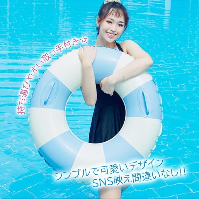 浮き輪 子供用 大人用 持ち手付き 90 100 120 浮輪 うきわ ストライプブルー 海 プール 夏休み おしゃれ かわいい