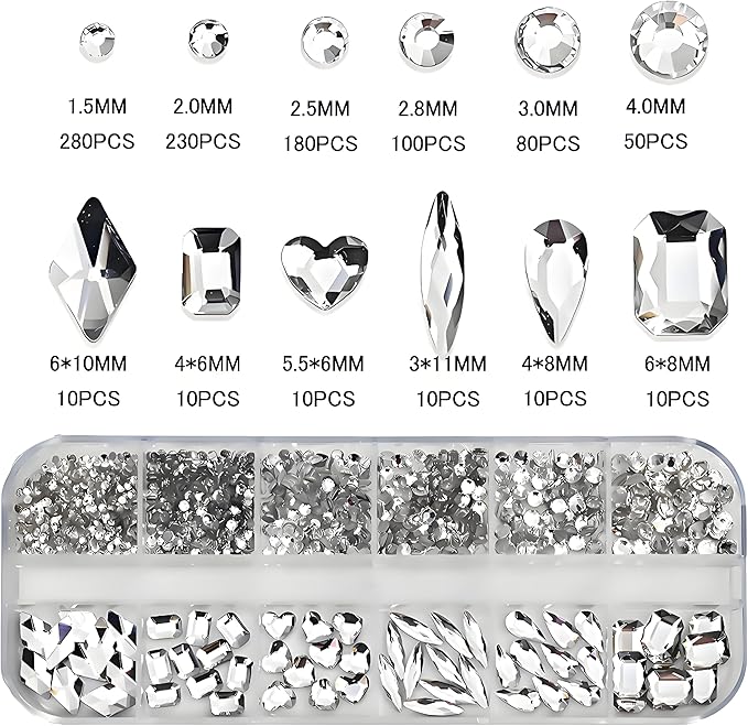 3.【キラキラした爪のラインストーン】:爪石は信頼性の高いK 9ガラスクリスタルで作られ、細かくカットされ、縁がきれいで、光屈折率が高く、虹のような色を反射することができます。異なるサイズをブレンドすることで、異なるネイルアートデザインを容易に実現でき、あなたの工芸に輝きと魅力を加え、あなたの爪をより輝かしく魅力的にすることができます