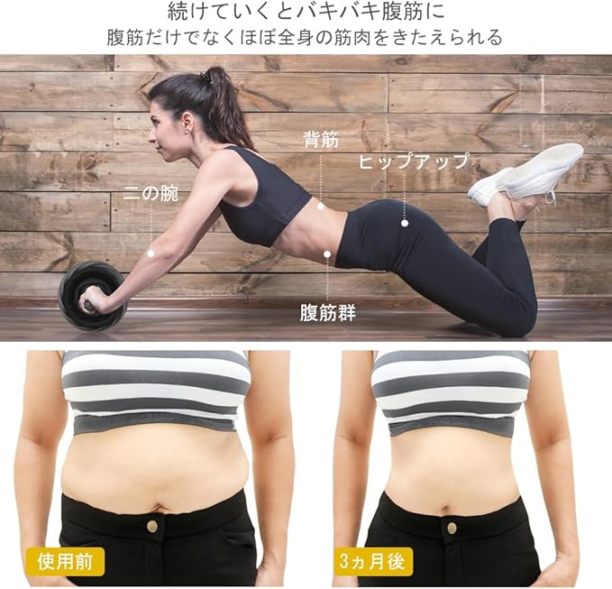 AUOPLUS 腹筋ローラー 膝マット付き アブホイール 腹筋 トレーニング器具 筋トレグッズ エクササイズローラー 体幹 ストレッチ ダイエット器具 アブローラー