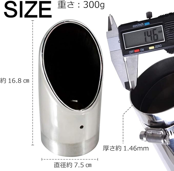 様々な車種に対応。耐食性、耐久性抜群。サビにくく、マフラーカッターにオススメのステンレス製です。 1.46mmの厚さがあり、しっかりとしています。下向き対応。汚れ防止にも。