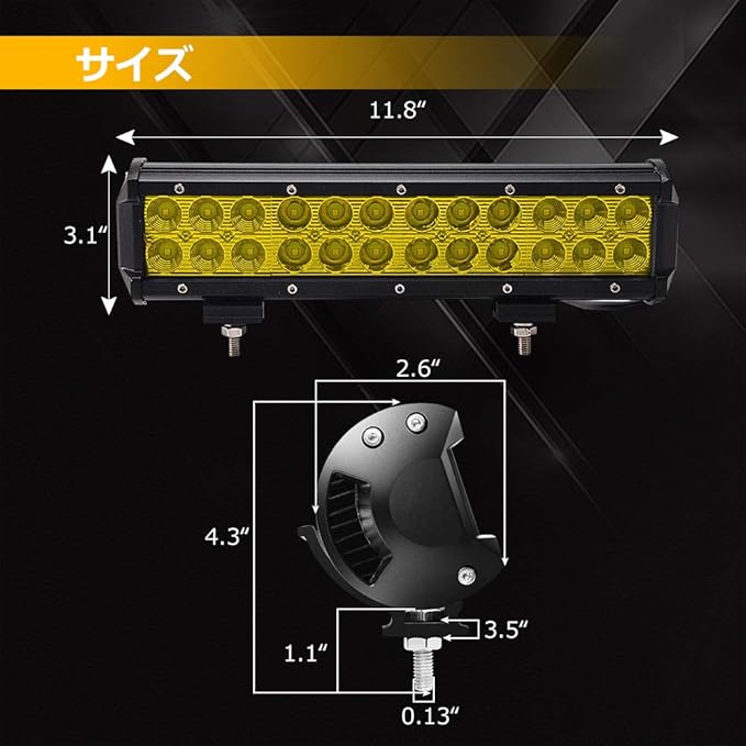 GREENBEAN LED作業灯 イエロー 72wライトバー 24個LEDチップ 広角 狭角 一体型 12V 24V兼用 防水 投光器 6500K 防水 防塵 防震 取付け自由 省エネルギー 各種作業車に対応