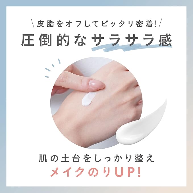 【テカリを吸着】肌に伸ばした瞬間、表面の皮脂やテカリをすっと吸い取る新感覚クリーム。必要な潤いだけを残し、崩れづらくメイクの映える肌へ導きます。