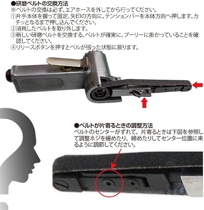 kaitou エアーベルトサンダー 10mm 角度調整 替えベルト3本付き 錆落とし 仕上げ