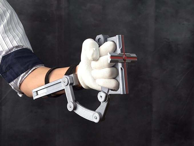 ナックル部サイズ:幅6.5cm 高さ11cm 指穴2cm 2.5cm 重量:90g 材質:プラスチック(PLA樹脂) セット内容:本体、マジックテープ2本 3Dプリンタで成型しているため軽くて丈夫です。 ハンドメイド品よりも精度の高い造形になっています。 素材の色を活かした無塗装品のため、塗装剥がれやひび割れ、いやなニオイもありません。 角度を変えると独特のメタリックな輝きがあります。 マジックテープ式なので着脱がカンタンです。 様々な腕の太さにも対応できます。 また、お好みのベルトに交換してもお楽しみいただけます。 指穴のサイズもゆとりをもたせてあるので、手の大きい方でも装着可能です。 腕の部分はレールになっており、前後にスライドできます。 アームの関節は自由に曲げることができます。 各部品は角を丸める処理をしているので優しい手触りです。 ※3Dプリンタで成形しているため、商品下部には積層痕がございます。 ※安全には配慮した設計ですが、持ち込みの可否は主催者様・運営者様にご確認ください。 ※保管の際には直射日光をさけてください。 その他ご不明な点がございましたらお問い合わせください。