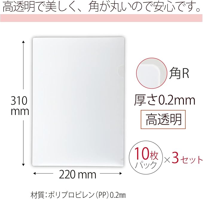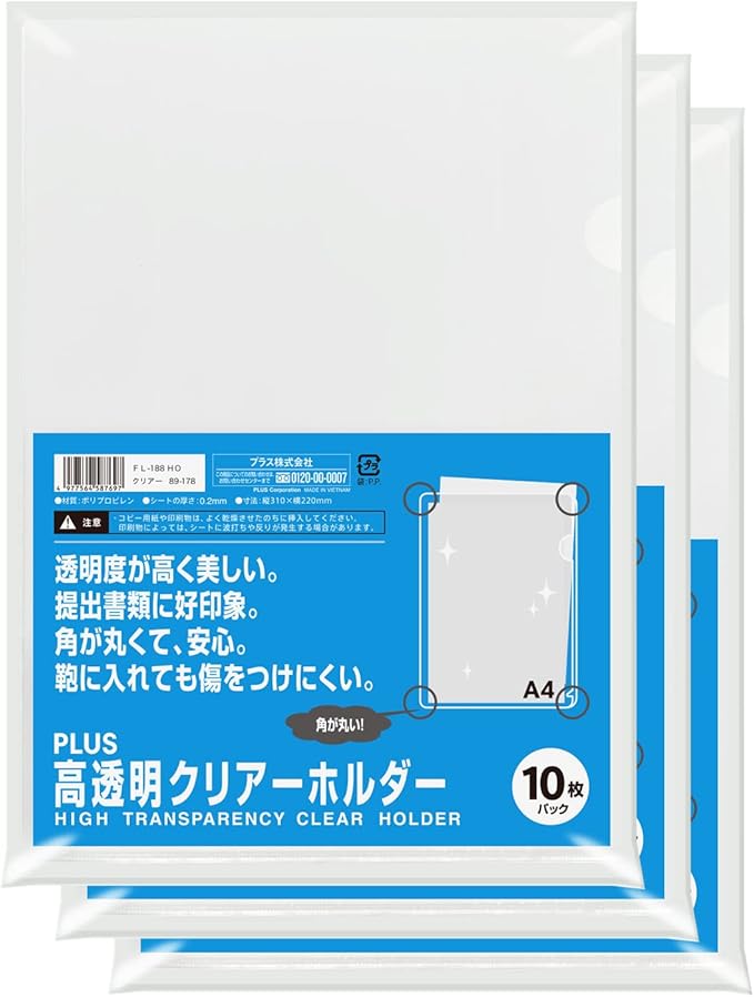 プラス クリアファイル クリアホルダー 高透明 0.2mm (角R) 30枚入 FL-188HO 89-178 3