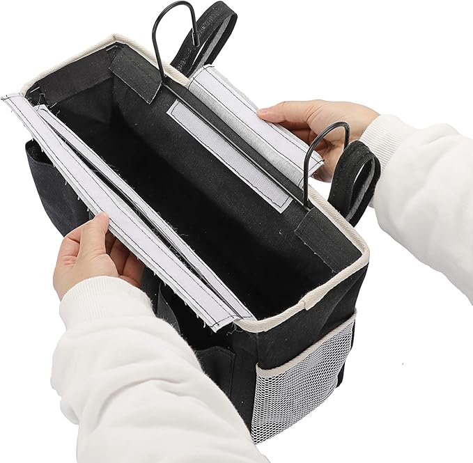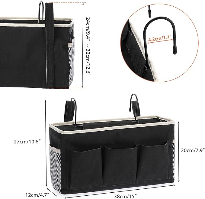 Sumnacon ベッドサイド収納ポケット 大容量 多機能収納かご 吊り下げ収納袋 掛け袋 小物収納ボックス 収納かご 雑貨収納 雑誌ブック マルチポケットオーガナイザー 防水素材収納袋 ベルクロ 学生寮 家庭 車用 マルチポケット マジックテープフック 鉄製フック(ブラック)