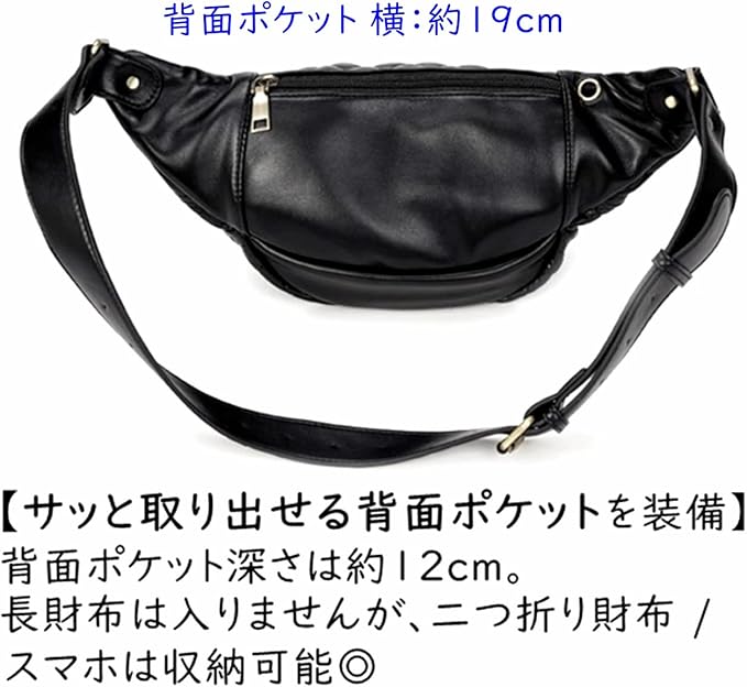 [ザザランド] ボディ バッグ ウエスト ポーチ メンズ 斜めがけ 前掛け 肩掛け アウトドア 革 (ブラック)