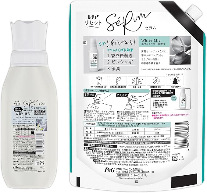 Lenor レノア 【まとめ買い】 リセット セラム 柔軟剤 ホワイトリリーの香り 本体 500mL+詰め替え 750mL