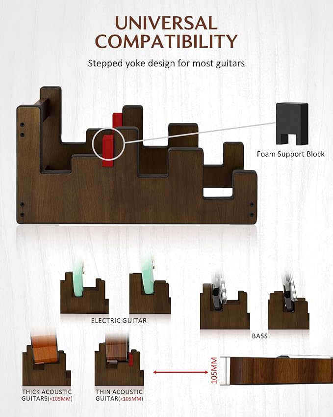 【超省スペース】 革新的な階層設計はスペースの使用を最適化し、ギターコレクションの素晴らしい展示を提供します。散らかりやすい床から手放し、自宅やスタジオを整然と視覚的に魅力的な音楽ショーケースに変えます。