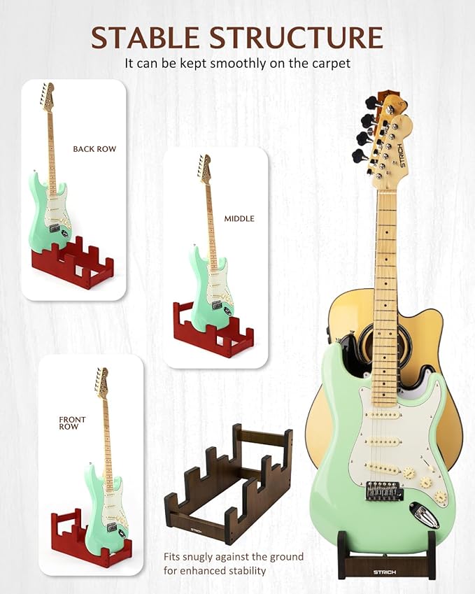 【革新的な階層構造】STRICH GS-Lシリーズギタースタンドは3つのギターを同時に安全かつ安定して展示することができます。階層状のレイヤーはギターの表裏を展示し、安全性を確保します。接触面には傷をつけない柔らかいEVAクッションが付いており、カーペット上でも安定性を維持します。