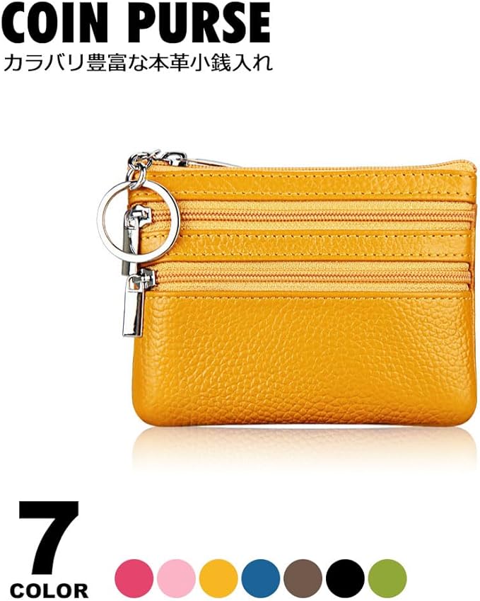 ■タイプ:小銭入れ(コインケース)■カラー:ローズレッド、ピンク、イエロー、ブルー、ダークブラウン、ブラック、グリーン■サイズ:約11cm 約9cm■素材:本革