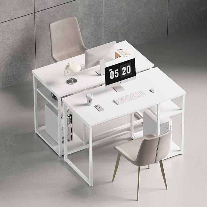 Maihail パソコンデスク 机 pcデスク 勉強机 ゲーミングデスク 白 ワークデスク テーブル 一人暮らし 家具 パソコンラック table 学習机 収納ローテーブル 100 ラック付きデスク 幅100*奥行48cm 白い SZ121BS スチールウッド簡易棚付きデスク ホワイト