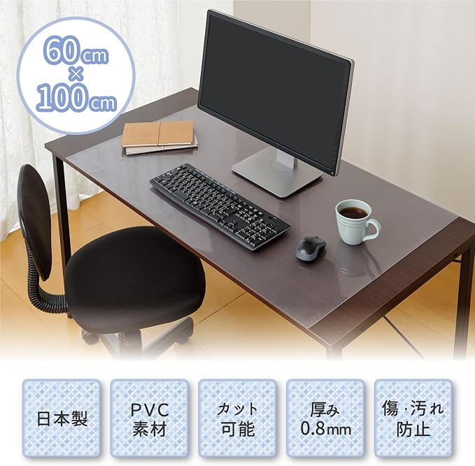 大切なデスクをキズや汚れから守るデスクマット、クリア素材なのでデスクの色合いやインテリアにも違和感なく設置できます。