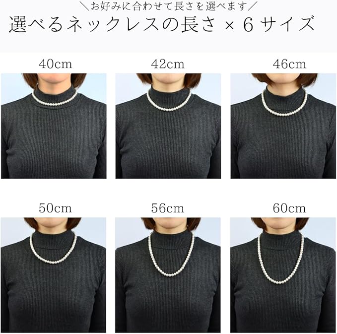【使いやすいサイズとお買い得セット!】フォーマルな装いに合わせやすい 8mm パール珠を採用。ネックレスの長さは 40cm~60cmの6サイズをご用意いたしました。
