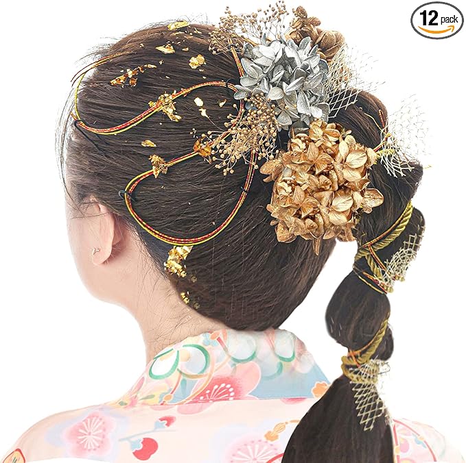 [JZOON] 髪飾り 水引 紐アレンジ ロープ ゴールド シルバー ドライフラワー プリザーブドフラワー ヘアアクセサリー 成人式前撮り 振袖 着物 和装 卒業式 結婚式 花嫁 ヘアアレンジ