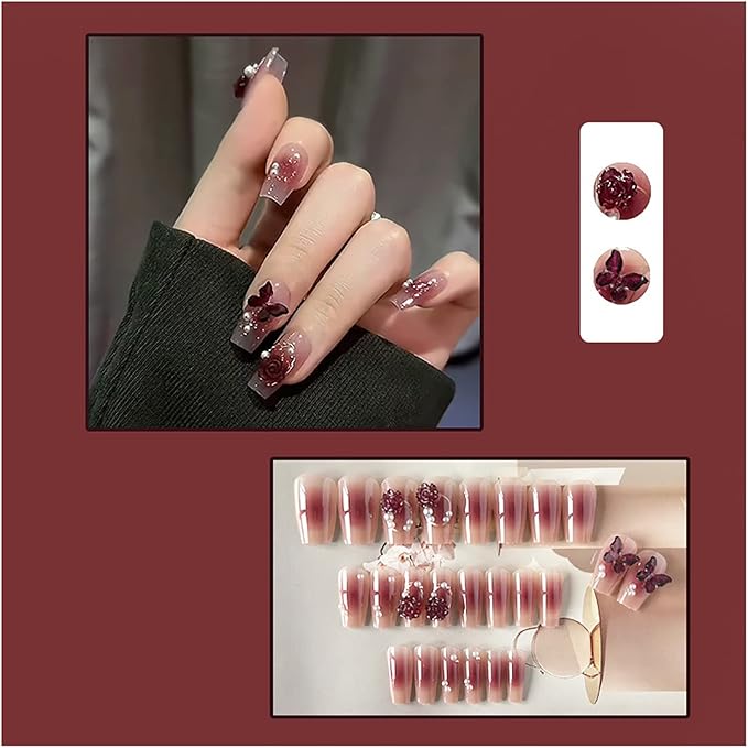 Lwenjing ネイルチップ 24枚入 3D 春夏 ネイルチップ 人気 和風 かわいい シンプル おしゃれ 花嫁ネイル 光沢 つけ爪 両面テープ 成人式 入学式 卒業式 結婚式 (LK15209)