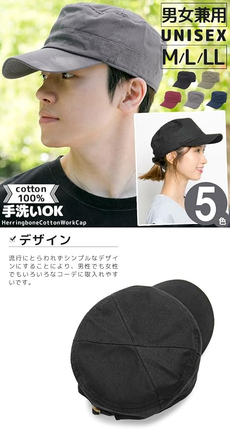 [ザクション] ワークキャップ メンズ レディース やや深め キャップ 帽子 大きいサイズ 洗える コットン ヘリンボーン柄