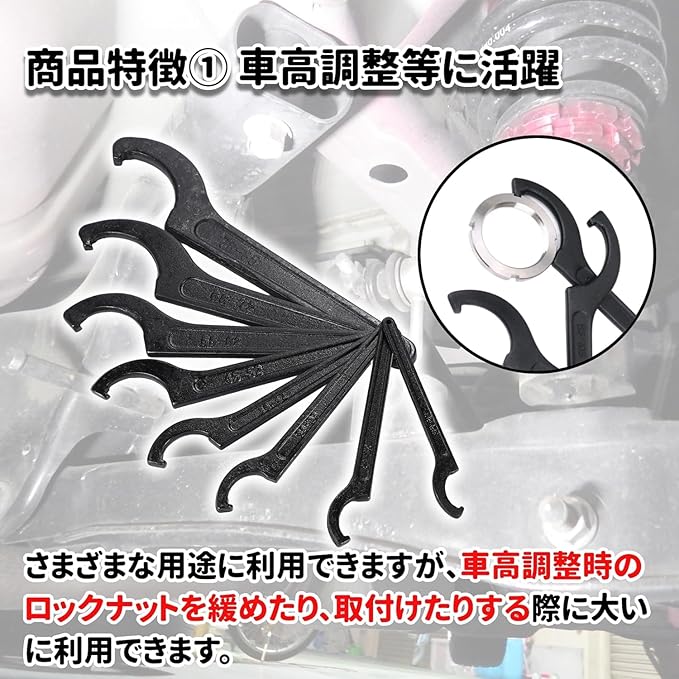 PPIOOY フックレンチ 車高調 レンチ 引掛スパナ 22~85mm 8本セット 車高調整 車高 調整 工具 整備 メンテナンス スパナ フックスパナ ピンスパナ フックタイプ (8)