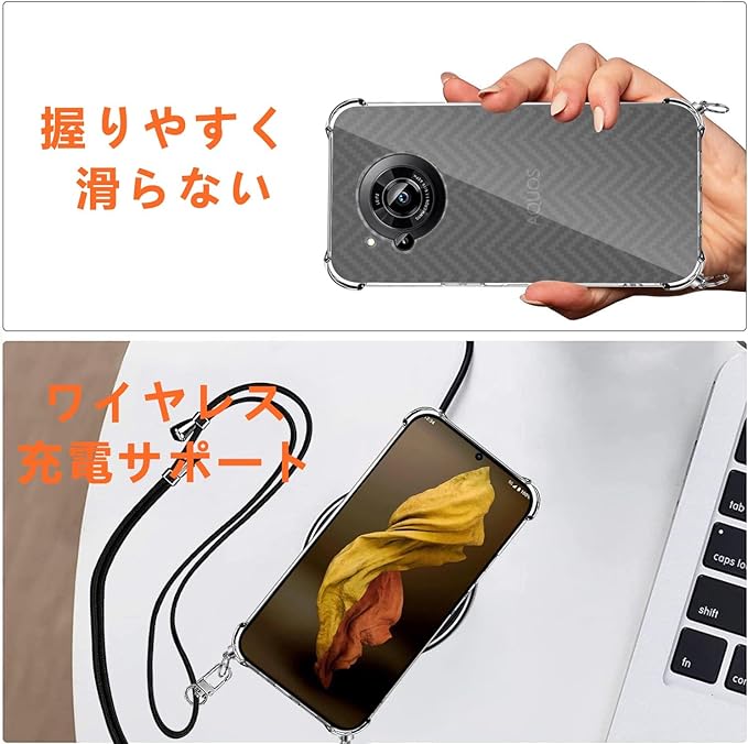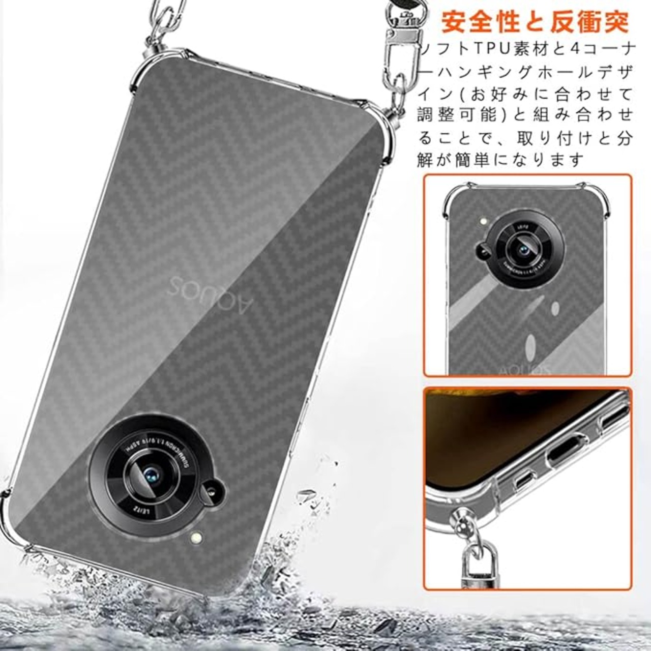 AQUOS R7 ケース クリア ショルダー 新型韓国 可愛い 薄型 軽量 TPU 耐衝撃 スマホ シリコン カバー SH-52C スマホケース 透明 スタイリッシュでシンプルなストライプデザイン カバー 首掛け 肩掛け 斜めかけ 縄掛け ケース ストラップ付き 1.5MM 取り外し調節可能な アクオス R7 カバー