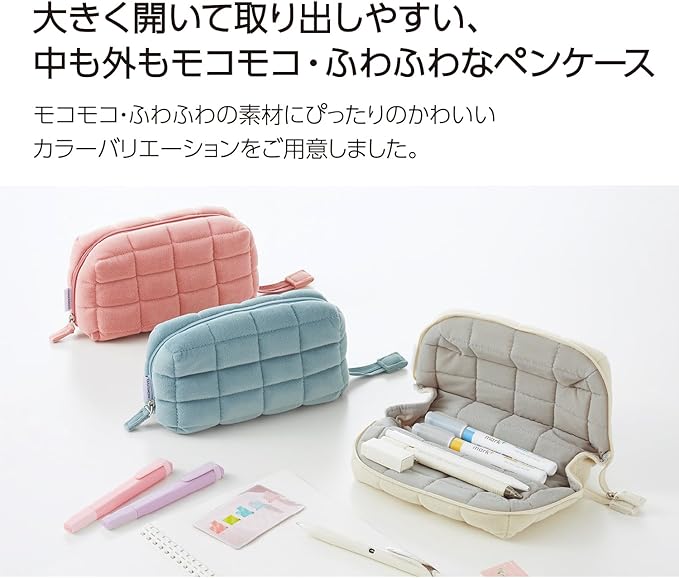 大きく開いて取り出しやすい、モコモコ・ふわふわなペンケース