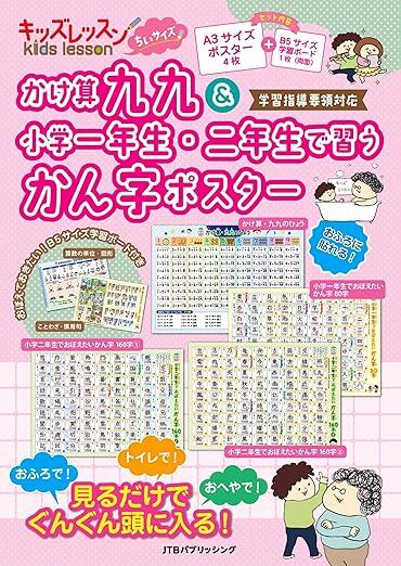 キッズレッスンちいサイズ かけ算九九&小学一年生・二年生で習うかん字ポスター (キッズレッスン 学習ポスター)