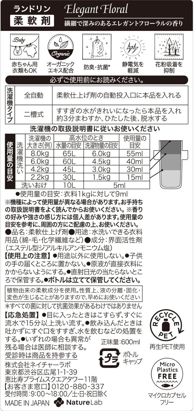 Laundrin ランドリン 柔軟剤 エレガントフローラル 600ml