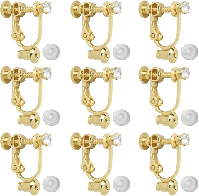 イヤリングコンバーター MUNCVY DIY ネジバネ式 横型 ラインストーン付きタイプ 5ペア10個 シリコンカバー付き ゴールド ネジ調整クリップ ノンホール ピアス イヤリングパーツ ハンドメイド 基礎金具 材料 素材