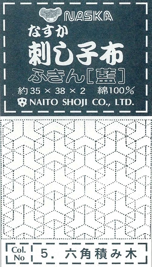 ナスカ 刺し子布 藍染め 5六角つみ木