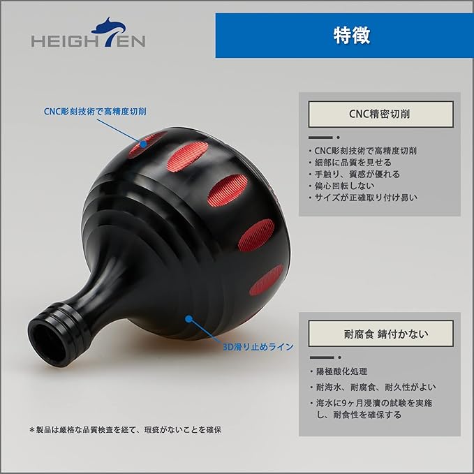 HEIGHTEN 45mm パワー リール ハンドル ノブ 4色 シマノ(Shimano) Bタイプ ダイワ(Daiwa) Lサイズ 通用 Harmer Series (ブラック/レッド, 45mm) (87)