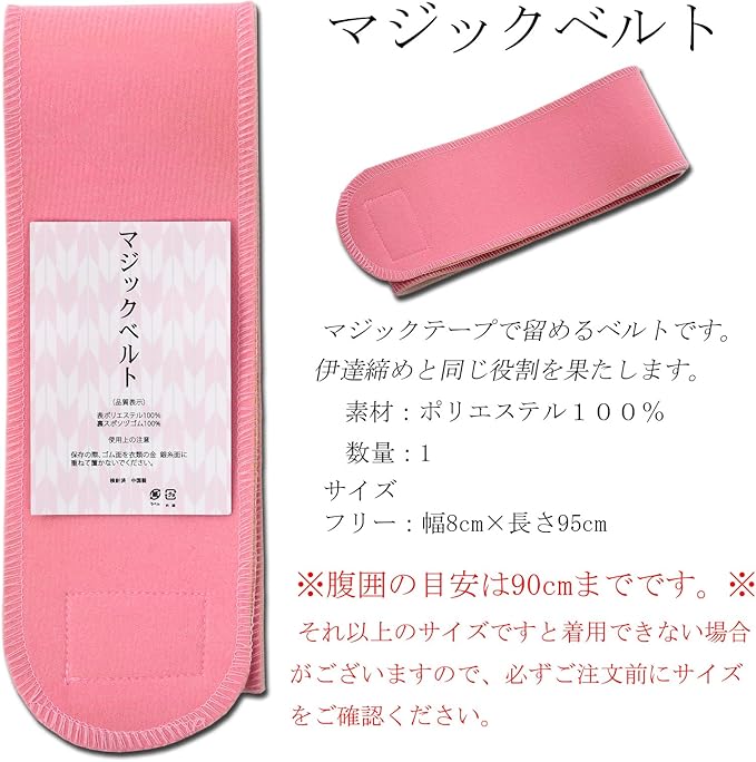 マジックベルト(ピンク)について:腹囲の目安は90cmまでです。 それ以上のサイズですと着用できない場合がございますので、必ずご注文前にサイズをご確認ください。