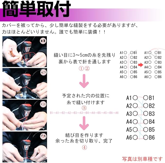 【セット内容】シフトレバーヘッドカバー x 1 糸 x 1 針 x 1