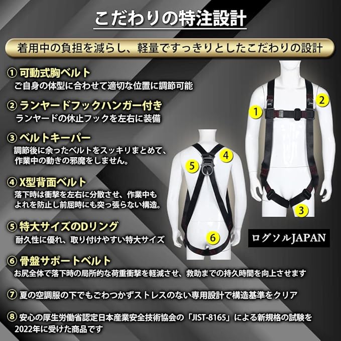 【新規格適合】 ログソルJAPAN フルハーネス Sサイズ 安全帯 軽量型 墜落制止用器具