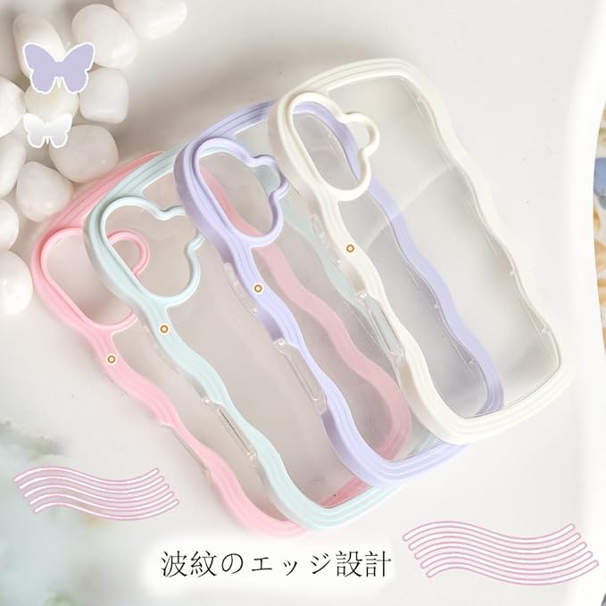 JOOBOY スマホケース 対応 ケース クリア 透明 TPU 韓国 可愛い ウェーブ ソフト 滑り止め 薄型 軽量 耐衝撃 おしゃれ スマホケース ストラップホール付き カバー