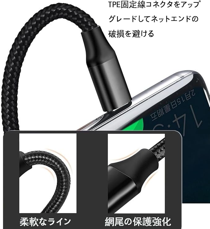 【高品質材料・超耐久性】:優れたナイロン編みケーブル本体を採用し、収納がより便利で、巻きにくく、手触りが良く、寿命が長い。【高品質材料・超耐久性】:優れたナイロン編みケーブル本体を採用し、収納がより便利で、巻きにくく、手触りが良く、寿命が長い。