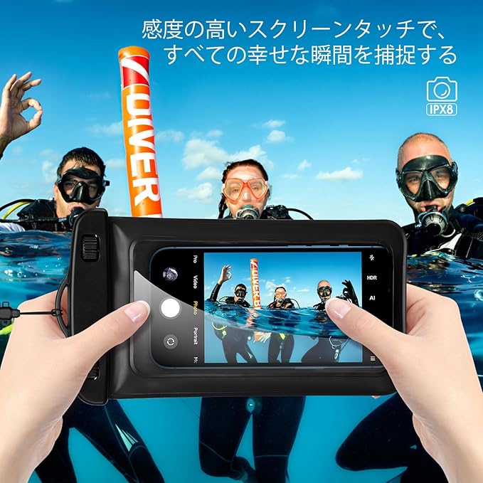 【IPX8認定防水&ナノ熱圧技術】 国際的な防水規格で最高レベルである、防水国際保護等級IPX8認定を取得した。IPX8は「特定な実験条件の下で、1メートルの深さの水中に長時間浸かっても損傷を受けず、通常は30分から4時間程度持続することが要求されます」とされており。 ヒント:本品をご利用する前に、製品の破損の有無をご確認ください。乾燥な場所で本製品を装着してください。ご利用する前に防水テストを行い、水漏れがないかどうかをご確認ください。水温が50℃以上の水でのご利用をご遠慮ください。