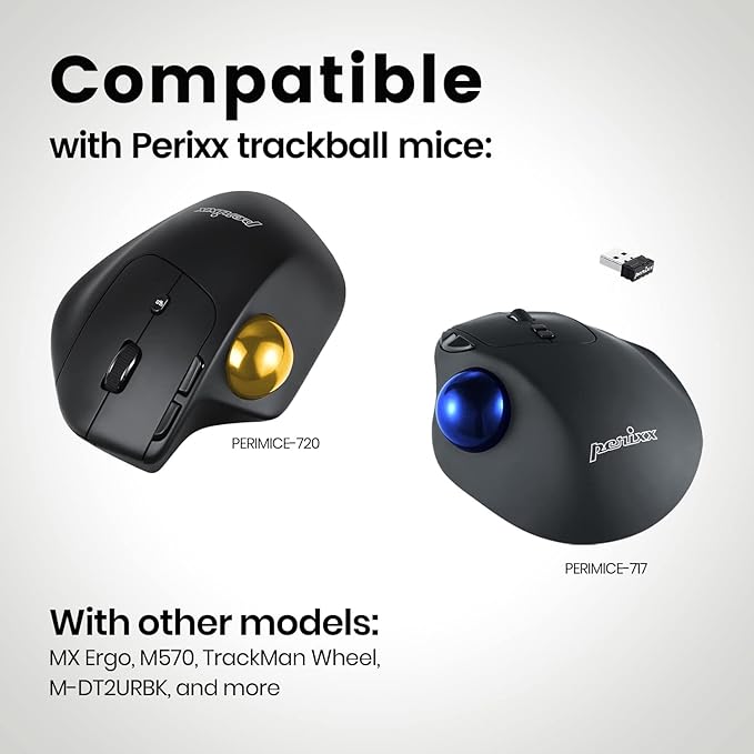 【幅広い互換性】ぺリックスPERIMICE-517/717/520/720以外にも直径34mmのトラックボールを使用したマウスに幅広くご使用いただけます。例:ロジクール MX Ergo, M570, Cordless, ケンジントン TrackMan Wheel (Trackman Marbleを除く), エレコム M-XT3DRBK (EX-6), M-DT2URBK, EX-G/DEFT,サンワサプライ MA-WTB43BKなど