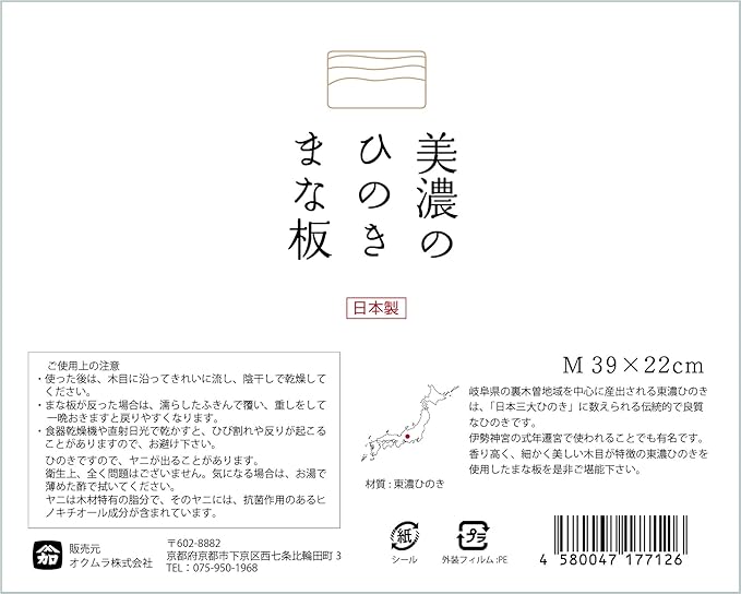 日本製 美濃のヒノキのまな板M 39 22cm