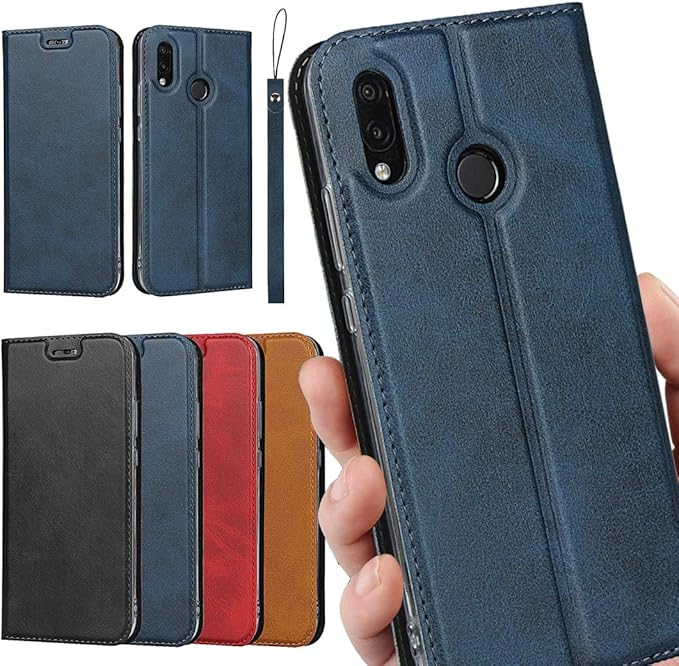 HUAWEI用 P20 lite/au HUAWEI用 P20 lite HWV32 ケース 手帳型 P20 lite ケース ファーウェイ P20lite 手帳型 カバー P20ライト ケース iCoverCase 内蔵マグネット 磁気閉鎖 ベルトなし スマホケース カード入れ付き スタンド機能 軽量 スプラットホール付き スプラット同梱 ネイビー 落ち着いた ブルー