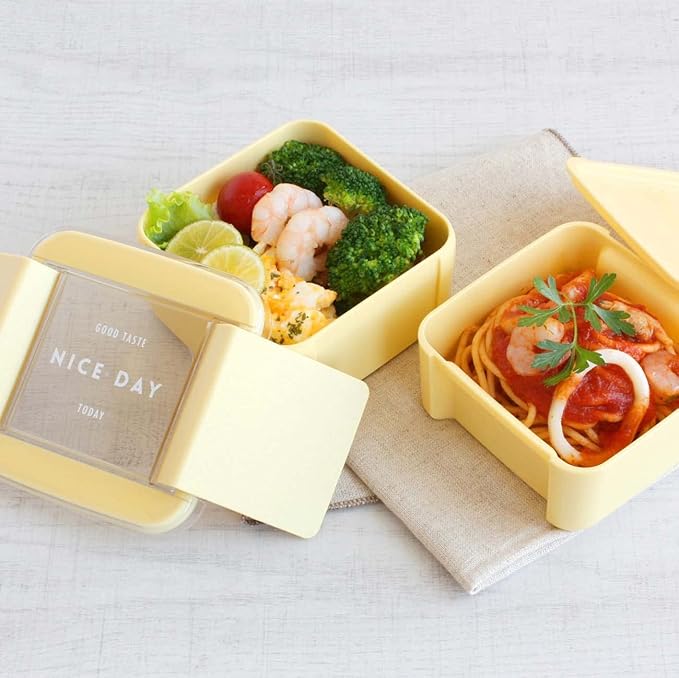 岩崎工業 弁当箱 イージーケア ランチボックス スクエア2段 680ml イエロー フタ・パッキンが一体で洗いやすい Ag 抗菌 防汚 レンジ対応 食洗機対応 B-1490 YE