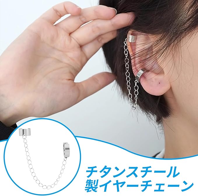 Doyime イヤーカフ フェイクピアス 垂れ下がり チェーン 耳たぶ 軟骨 イヤリング ピアス穴不要 人気 おしゃれ メンズ レディース ノンホールピアス 片耳用