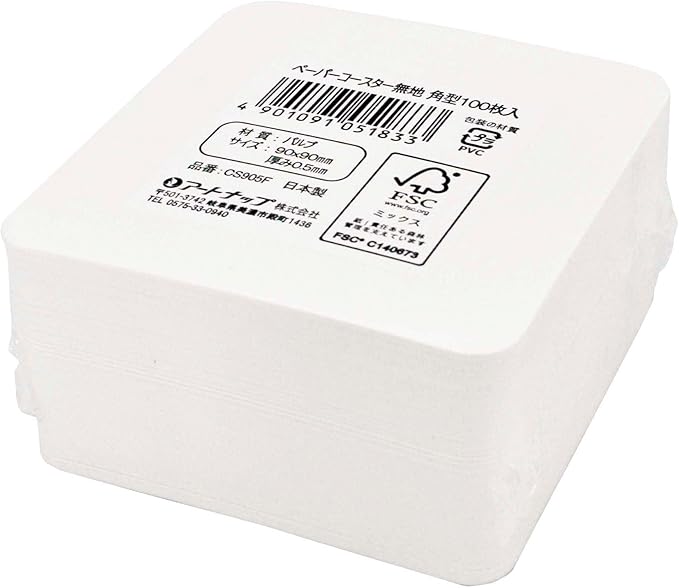 アートナップ 業務用 ペーパー コースター 90mm 角型 無地 FSC認証 100枚入 CS905F 日本製