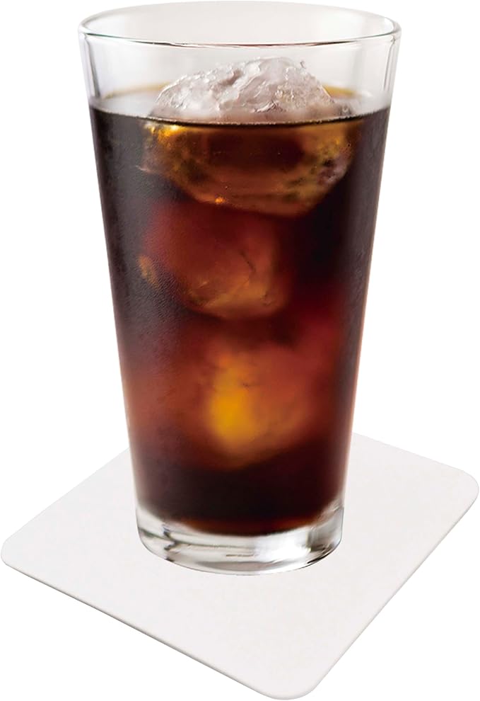 ホテル・レストラン・カフェ・居酒屋等の飲食店におすすめのシンプルな白無地の角型コースターです。