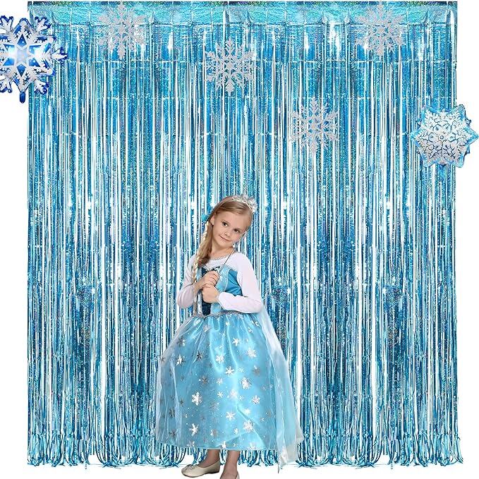 2個セット BRAVESHINE タッセルカーテン キラキラ 背景 明るい光沢 誕生日 飾り付け 100cm*250cm 誕生日 飾り カーテン birthday decorations パーティー デコレーション party decoration (ブルー)