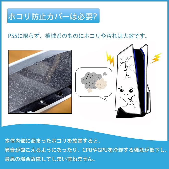 ⭐【サイズがピッタリ】アクリルカバー自体大きさには余裕ある為使い勝手は良いです。ディスク用のスリットやUSB端子用の穴もあるので、いちいち外さなくてもよいです。ps5スタンド使用していても特に問題なく使用できます!