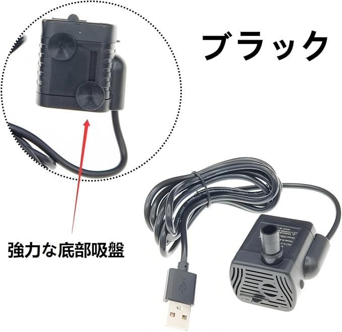 水中ポンプ 小型 水槽用 ミニ 排水ポンプ 池 USB給電 潜水 静音 揚程0.5-1.5M 調整可能 循環ポンプ 給水・排水ポンプ 水族館給水 釣り用 猫給水用 水槽水循環 DC5V 3W 吐出量200L/H (ブラック) (USB給電(ブラック))
