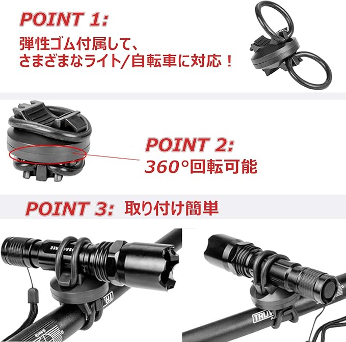 ライトホルダー 自転車 ライトクリップ マウント バイクライトホルダー ライトマウント 円形懐中電灯専用 (B-360 回転)