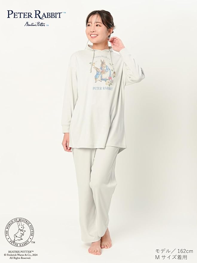 [repose time] ルームウェア レディース 長袖 上下 大きいサイズ 部屋着 パジャマ ゆったり パンツ 可愛い 【ピーターラビット™ギフト柄チュニック&パンツセット】 PETER RABBIT™ 正規品 綿混 吸水